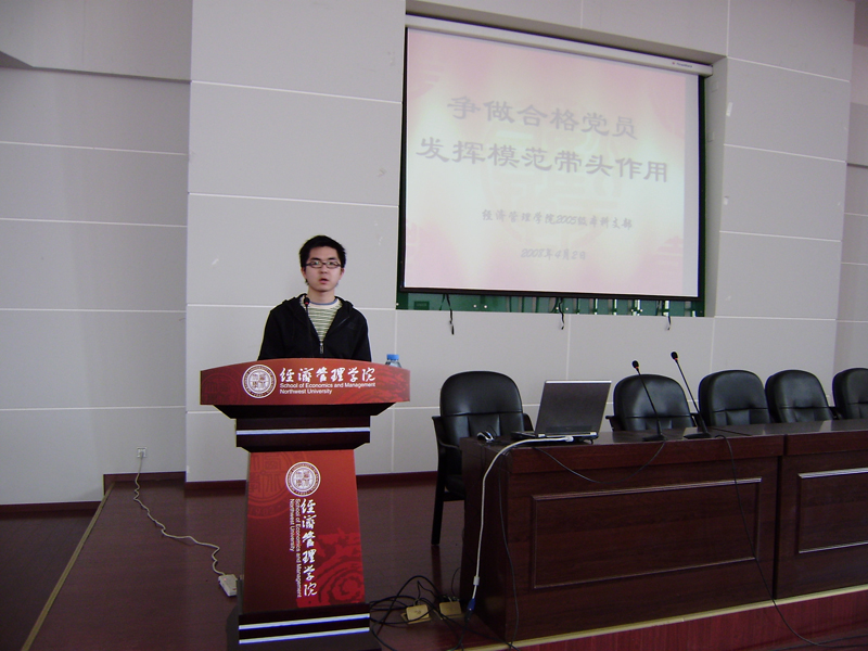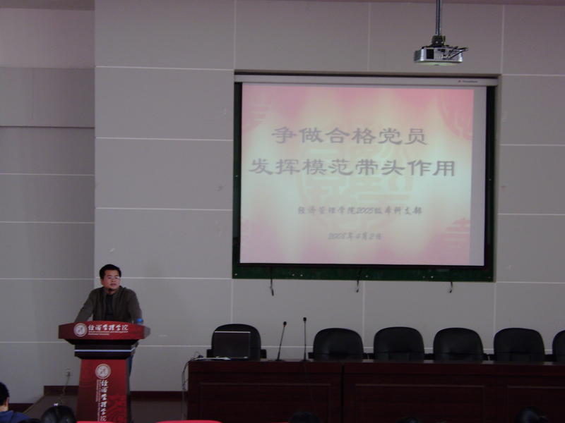 2008年4月2日下午3:30,776net必赢官网05级本科党支部在金海报告厅召开了题为“争做合格党员,发挥模范带头作用”的专题组织生活会,会议由05级支部书记马金保老师主持,05级120名学生党员参加。