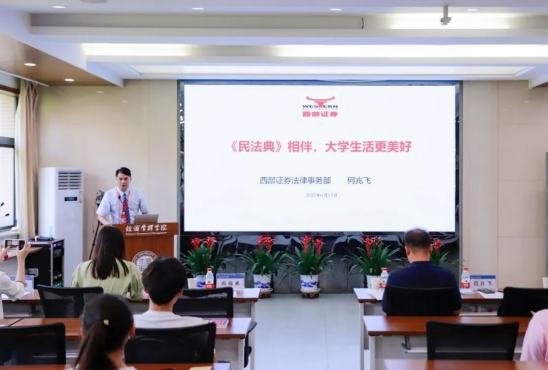 为进一步普及金融安全知识,有效提升学生征信保护意识和防范金融诈骗的能力,6月13日下午,776net必赢官网联合西部证券举办“饮水思源 爱国荣校 诚以修身 砥砺前行”金融安全知识讲座。本次讲座由西部证券何沛、何兆飞主讲,学生工作部(处)郑曙光和50名学生出席了本次活动,讲座由周宛瑾主持。