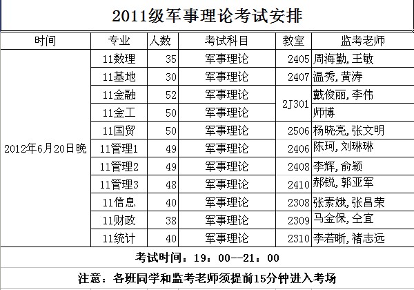 2011级军事理论考试安排