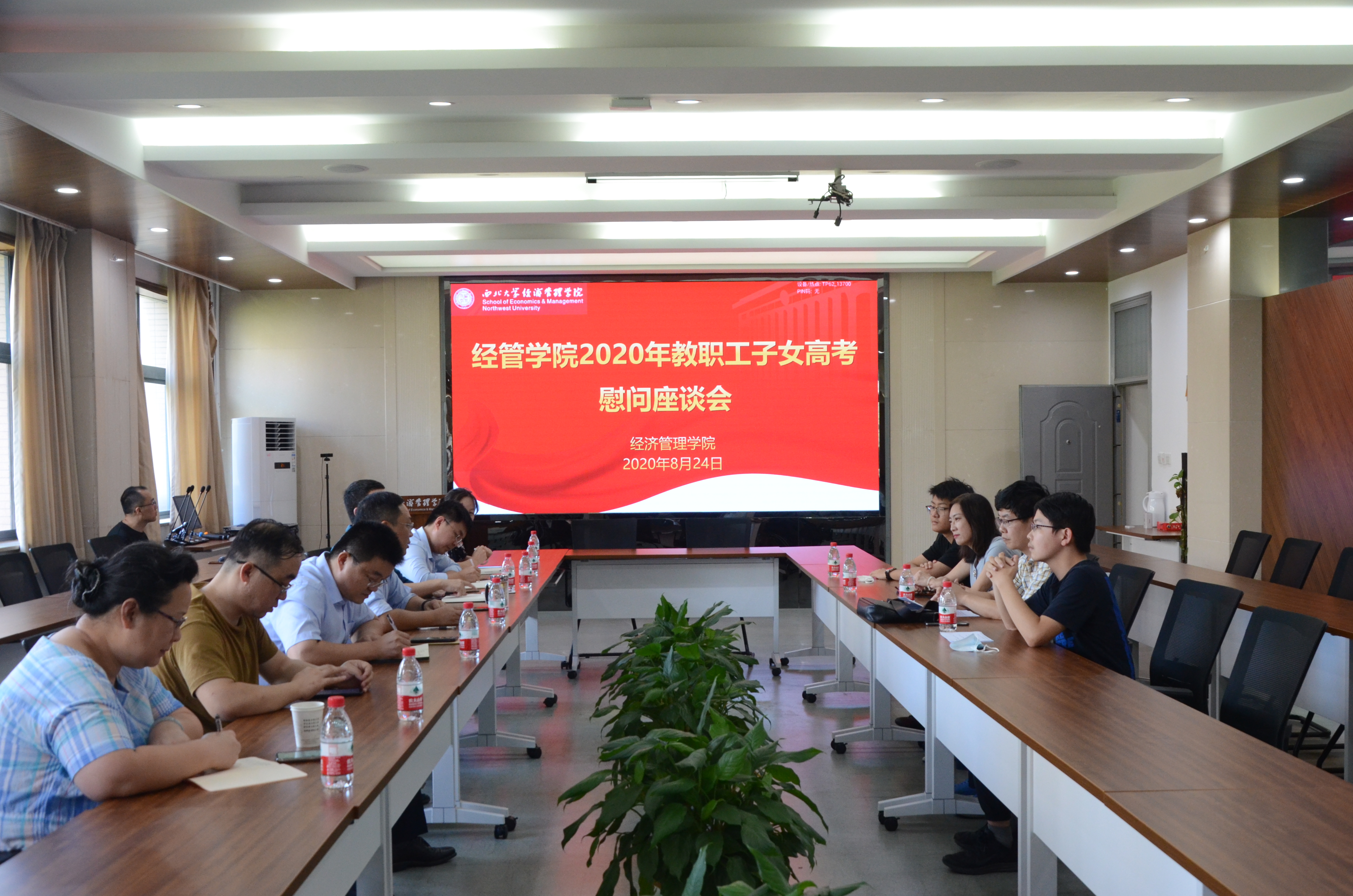 8月24日,学院在318会议室召开2020年教职工高考子弟座谈会。院长吴振磊,副院长师博、李辉、康蓉,工会主席付媛,我院今年子女参加高考的马小勇副教授、余洁副教授,和考生马郎天、...